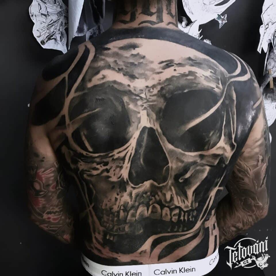 Tetování lebka na zádech