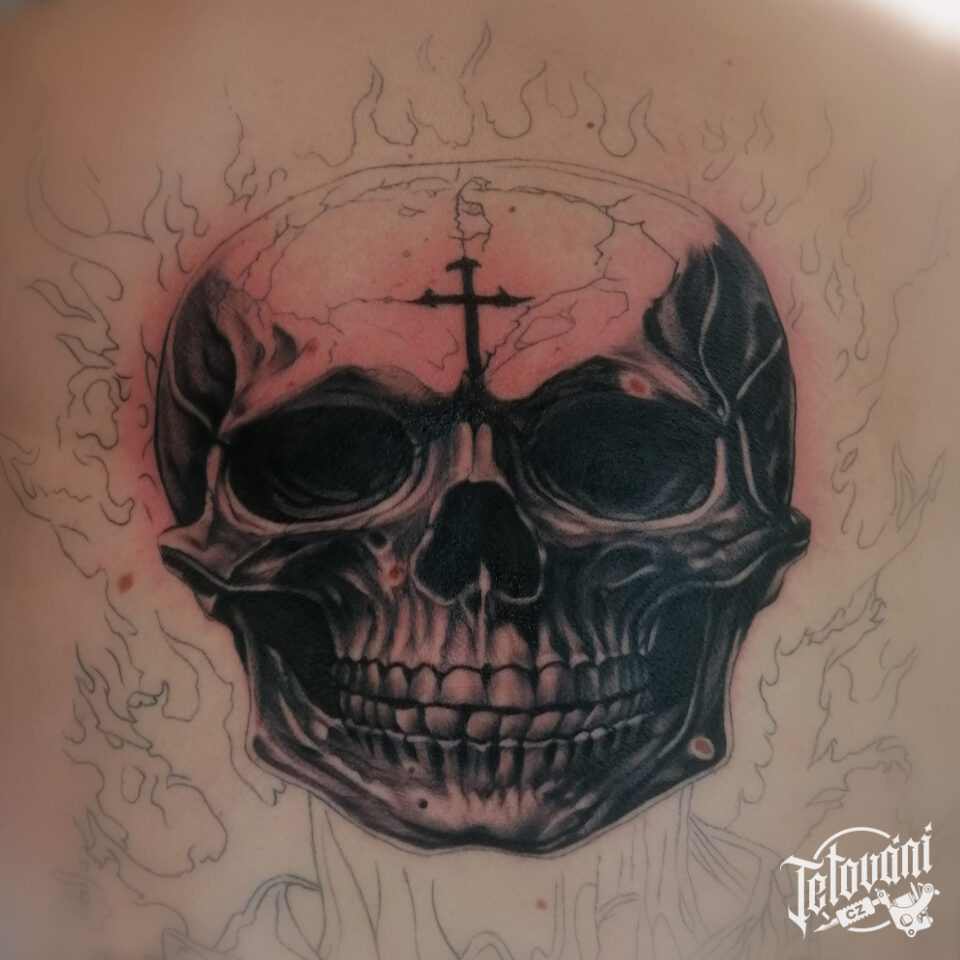 Tetování lebka na zádech