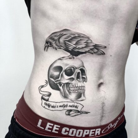 Tetování lebka, nápis na...