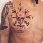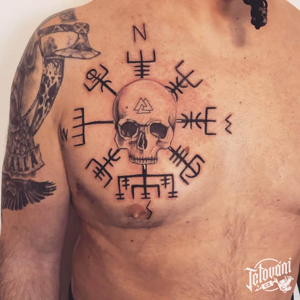 Tetování lebka ochranné symboly na prso