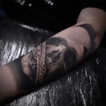 Tetování lebka, portrét na předloktí