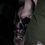 Tetování lebka, portrét na předloktí