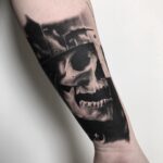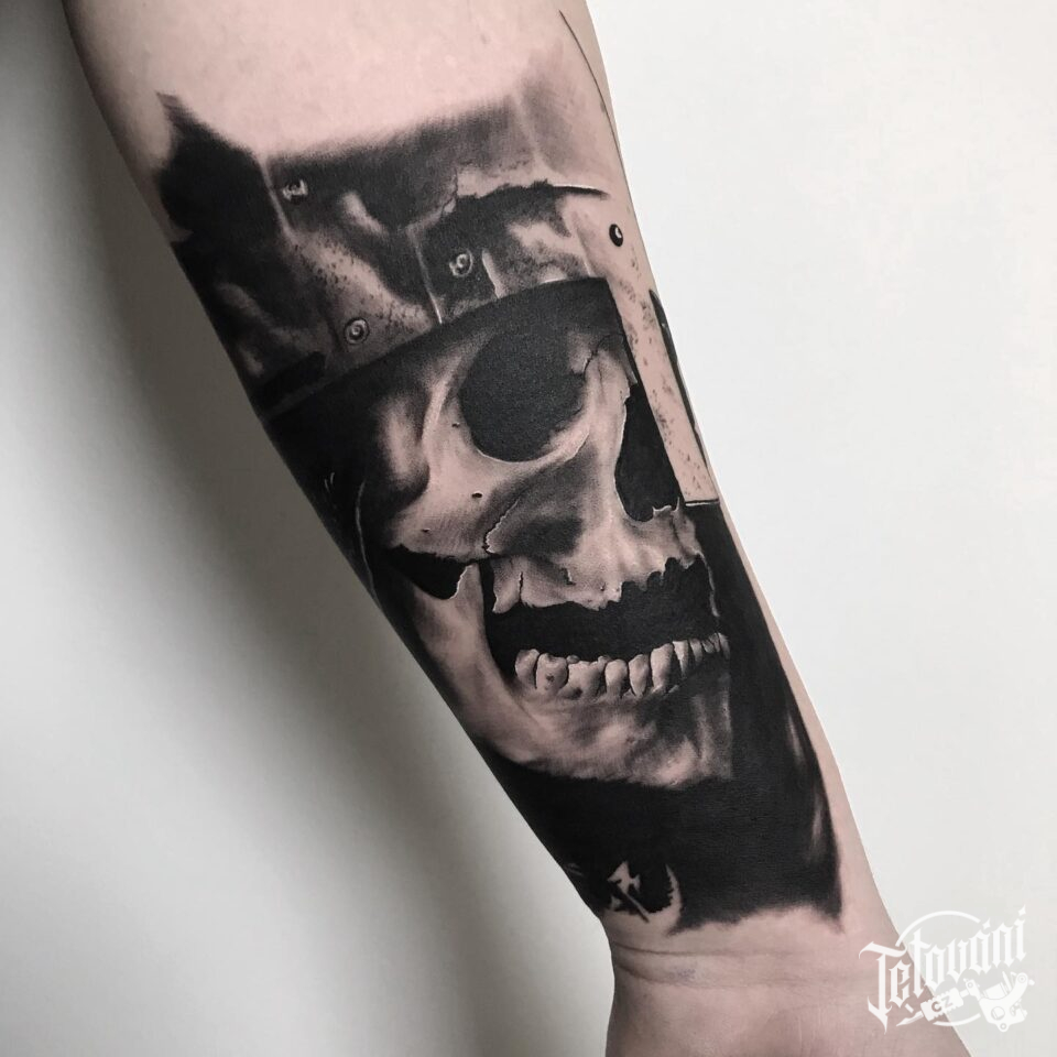 Tetování lebka, portrét na předloktí