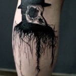 Tetování lebka ptáka znamení zla na lýtko