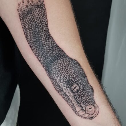 Tetování lebka s hadem na předloktí
