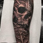 Tetování lebka s kompasem na předloktí