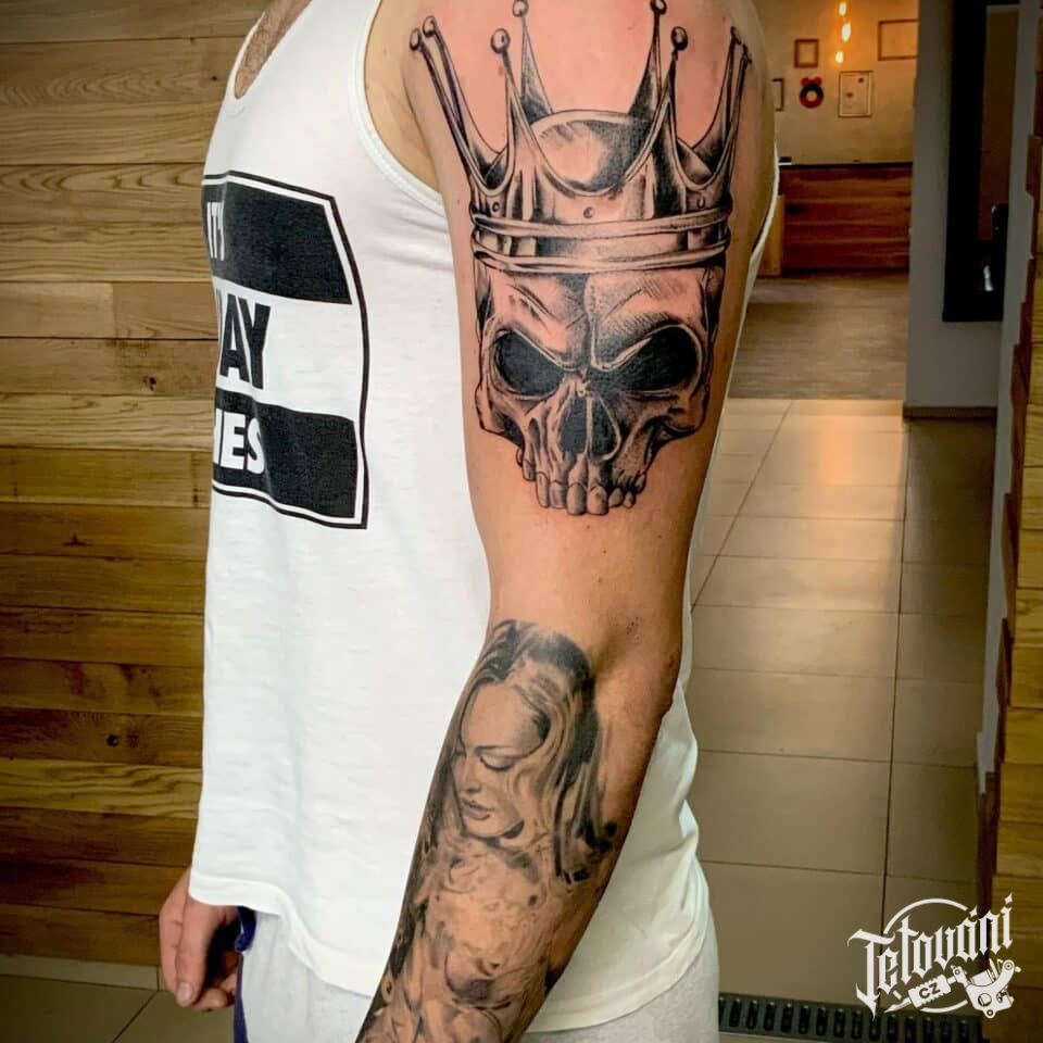 Tetování lebka s korunou na rameno