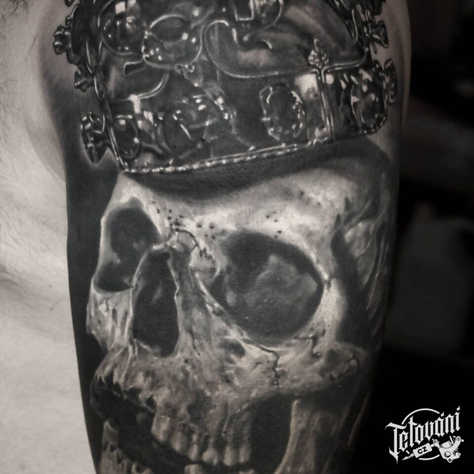 Tetování lebka s korunou na rameno
