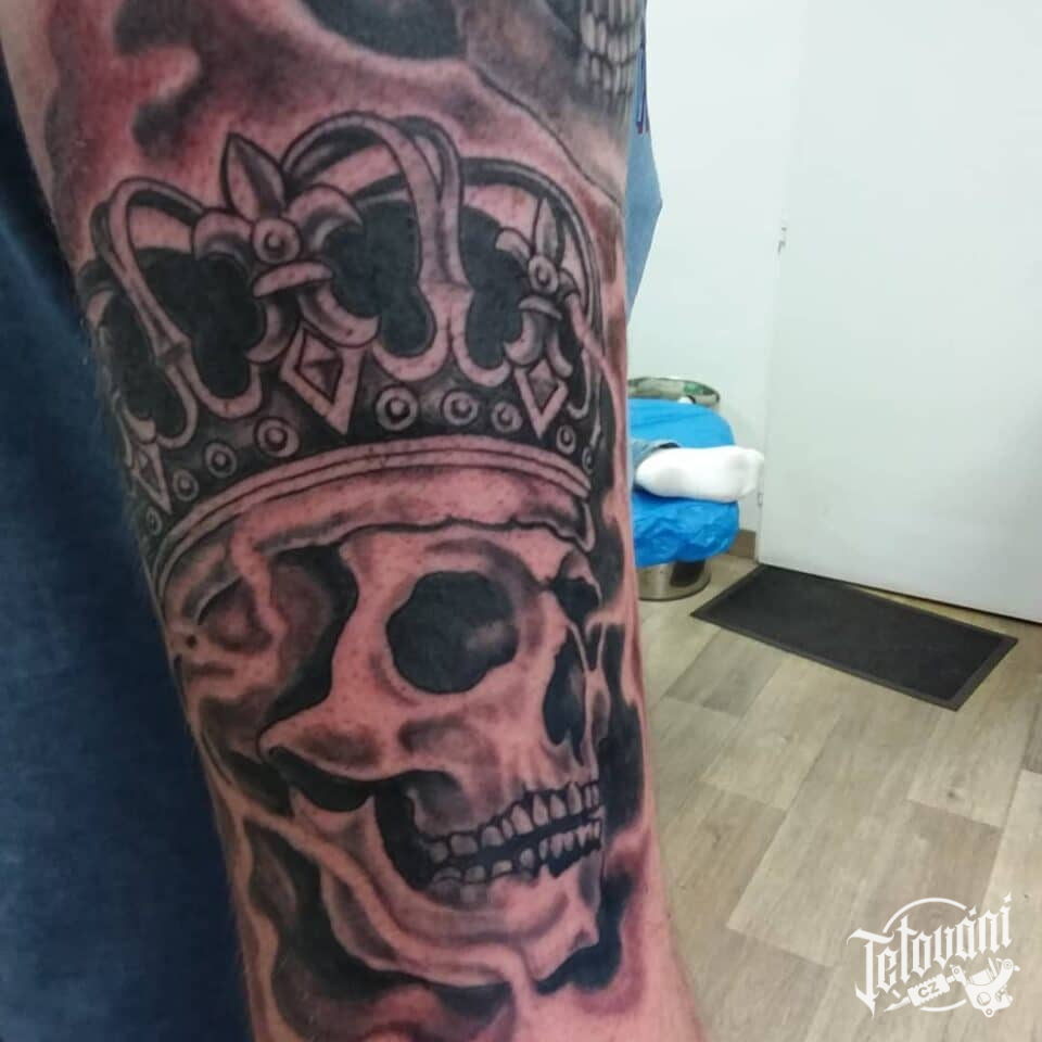 Tetování lebka s korunou na rameno