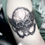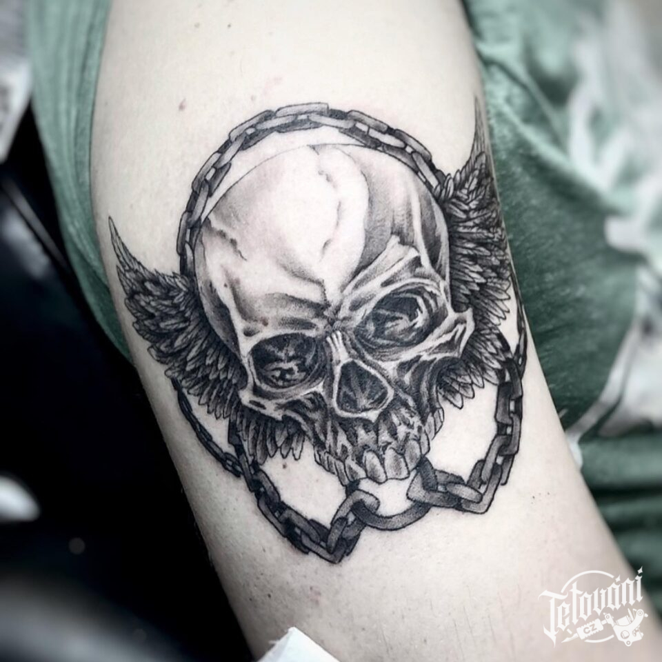 Tetování lebka s křídly na rameno