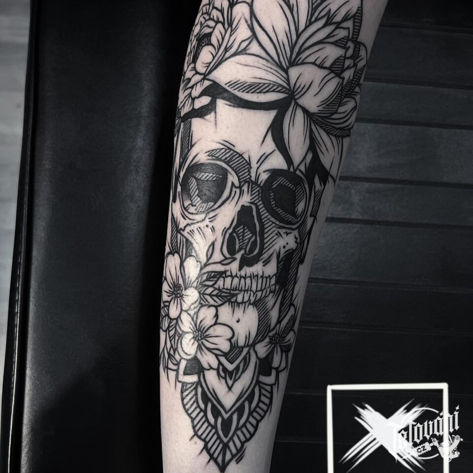 Tetování lebka s květina...
