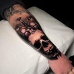 Tetování lebka s mečem na předloktí
