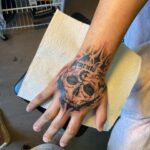 Tetování lebka s nápisem na hřbetu ruky