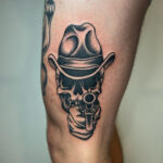 Tetování lebka se zbraní na bok stehna