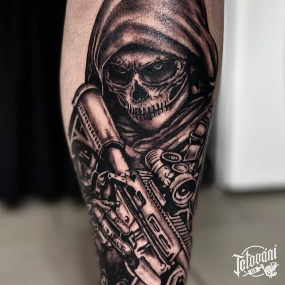 Tetování lebka se zbraní...