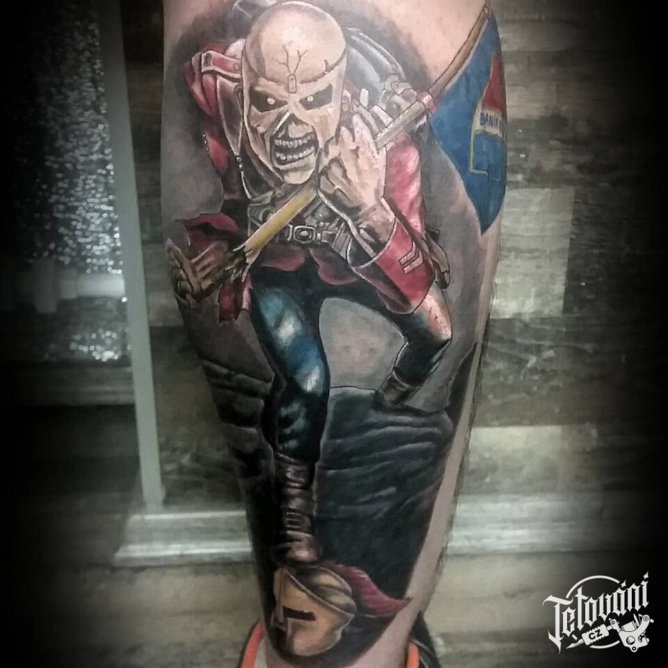 Tetování lebka, sparťanský bojovník na lýtku