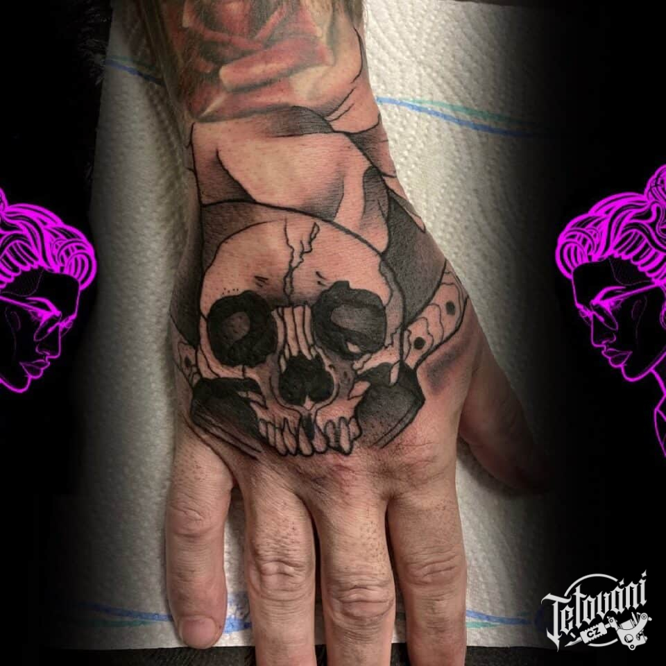Tetování lebka, symbol na hřbet ruky
