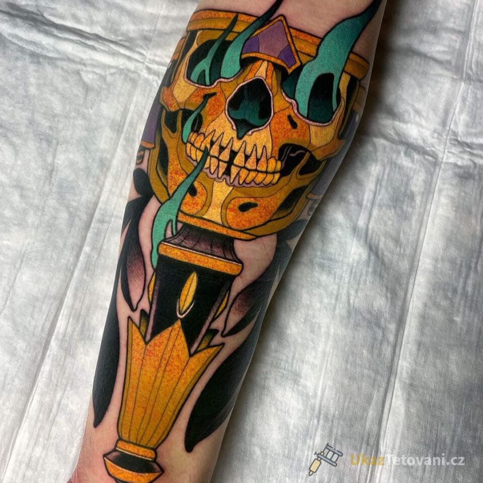Tetování lebka symbol síly na předloktí