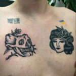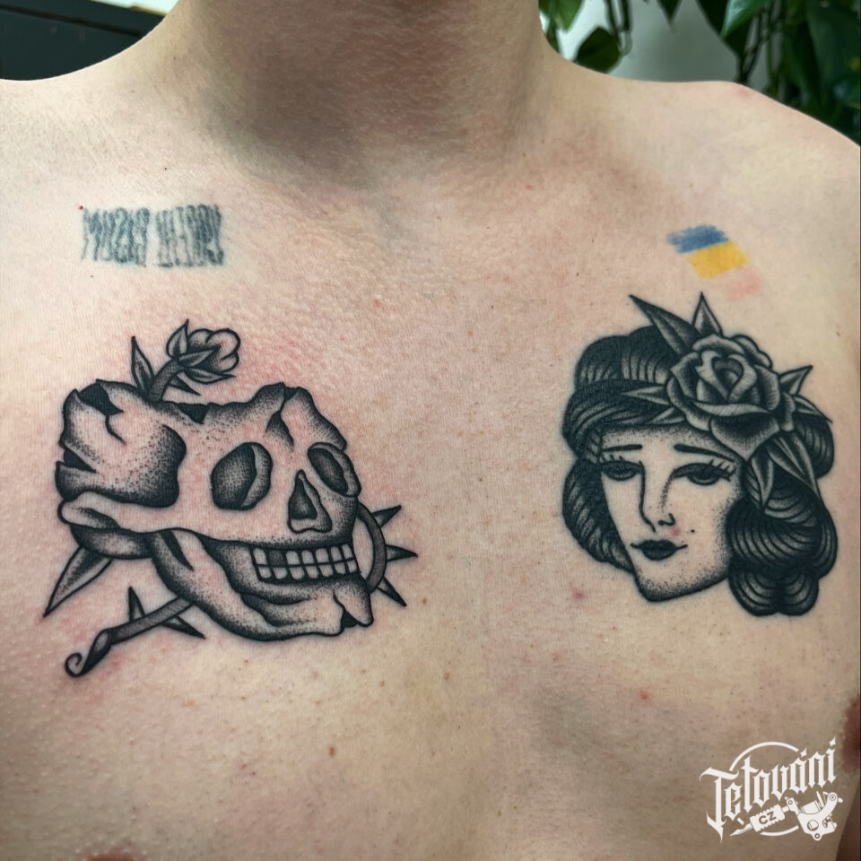 Tetování lebka, žena na hrudník