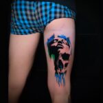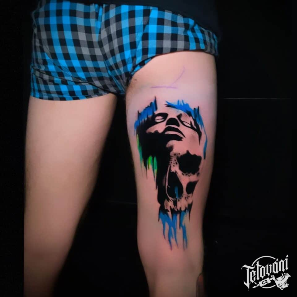 Tetování lebka, žena na stehno