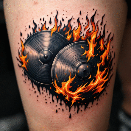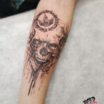 Tetování lebka, znak Let it Roll hudba na předloktí
