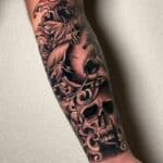 Tetování lebka, žralok a moře na předloktí