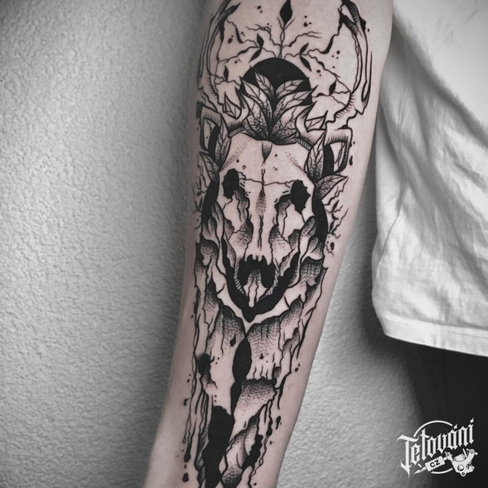 Tetování lebka zvířete, jelen na předloktí