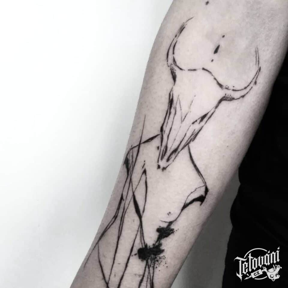 Tetování lebka zvířete na předloktí