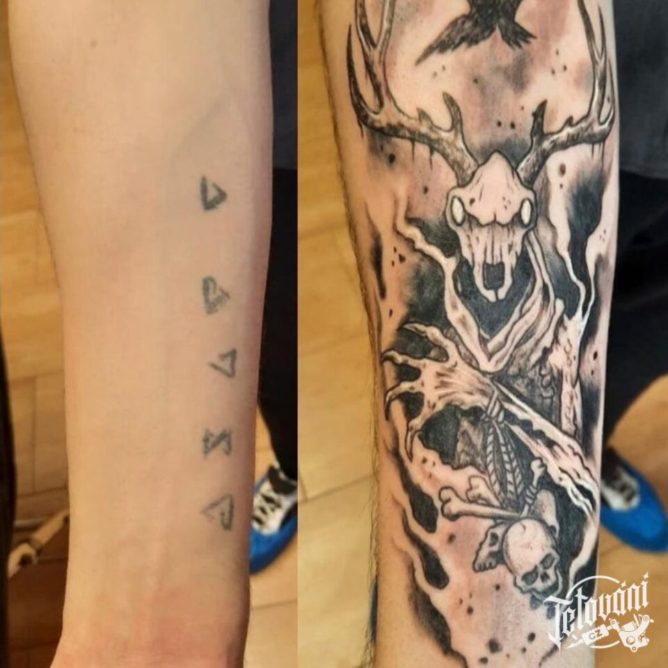 Tetování lebka zvířete na předloktí