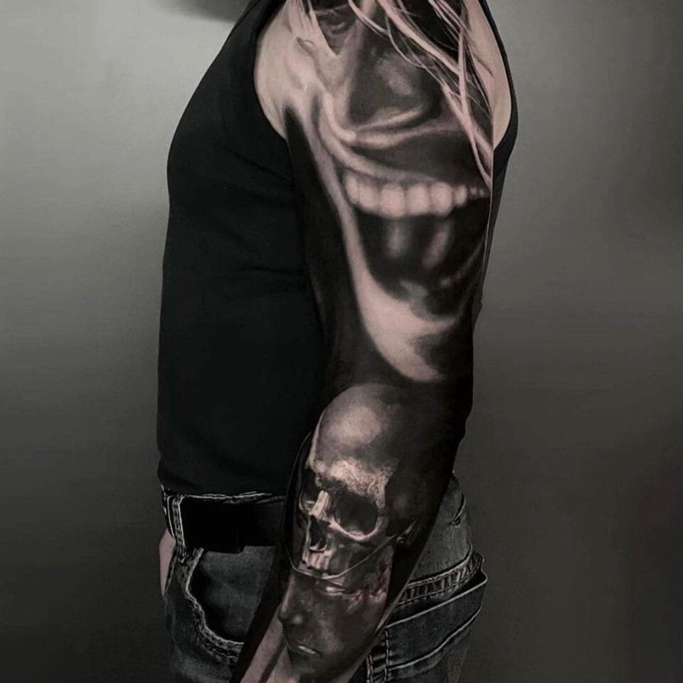 Tetování lebky a obličeje rukáv