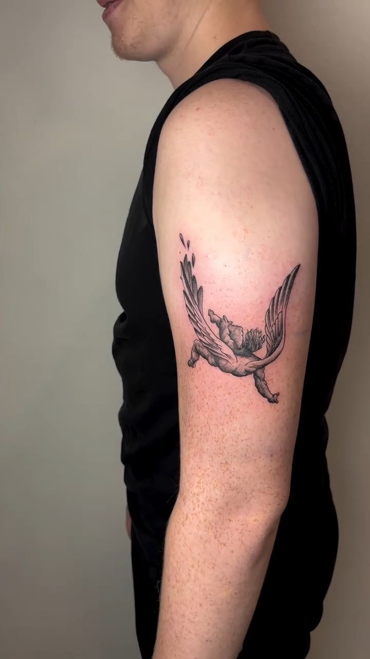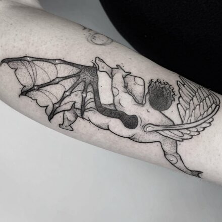 Tetování lebky a padlý anděl n rameni a hrudníku