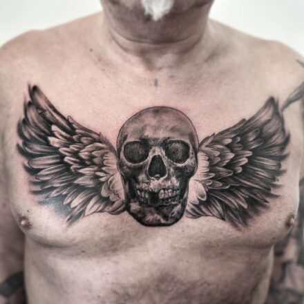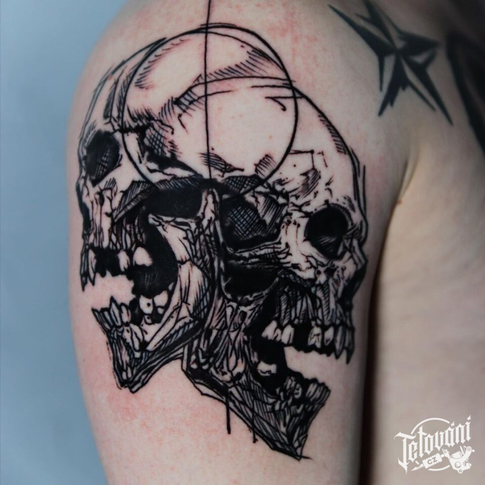 Tetování lebky na rameno