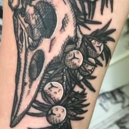 Tetování lebky, oko na předloktí