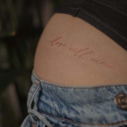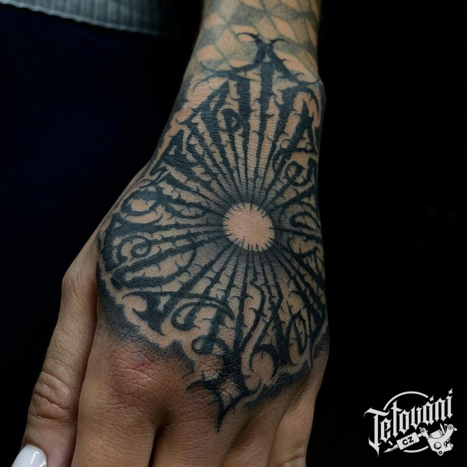 Tetování lettering nápis na hřbetu ruky