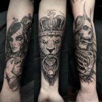 Tetování lev, ďábel na předloktí