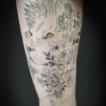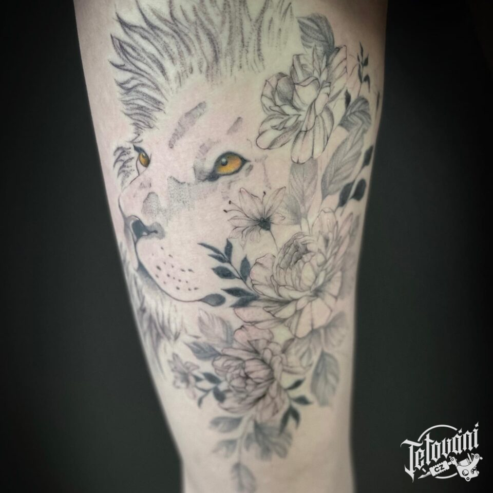 Tetování lev, květiny na...