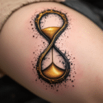 Tetování ležatá osmička a přesýpací hodin na stehno