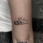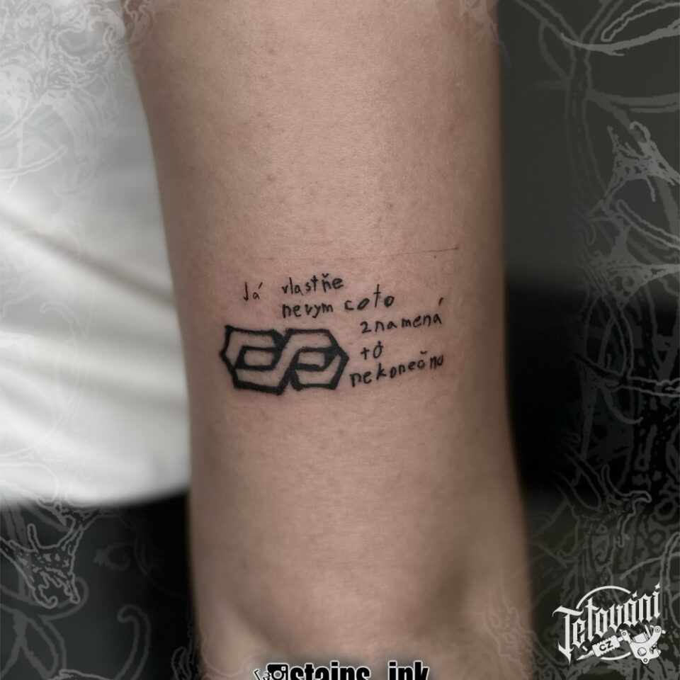 Tetování ležatá osmička nápis, citát na paži