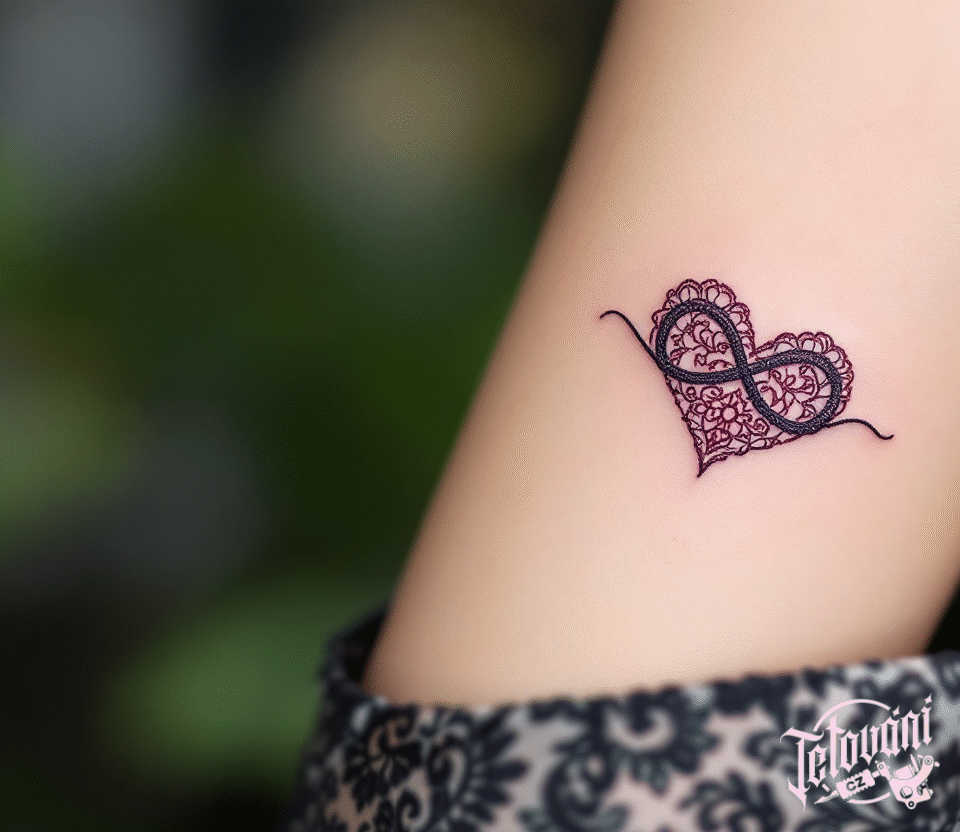 Tetování ležatá osmička, nekonečno a srdce na ruce