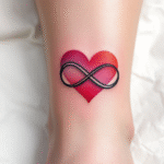 Tetování ležatá osmička, nekonečno srdce na holeni