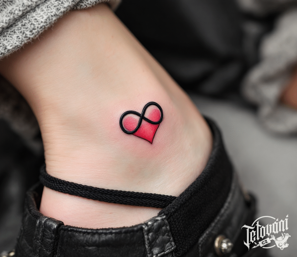 Tetování ležatá osmička, nekonečno srdce na kotník