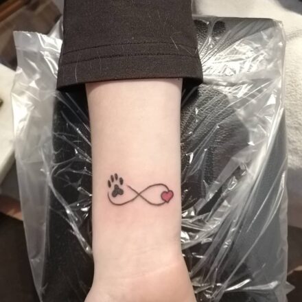 Tetování ležatá osmička z lučního kvítí na předloktí
