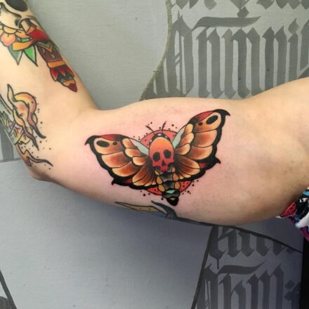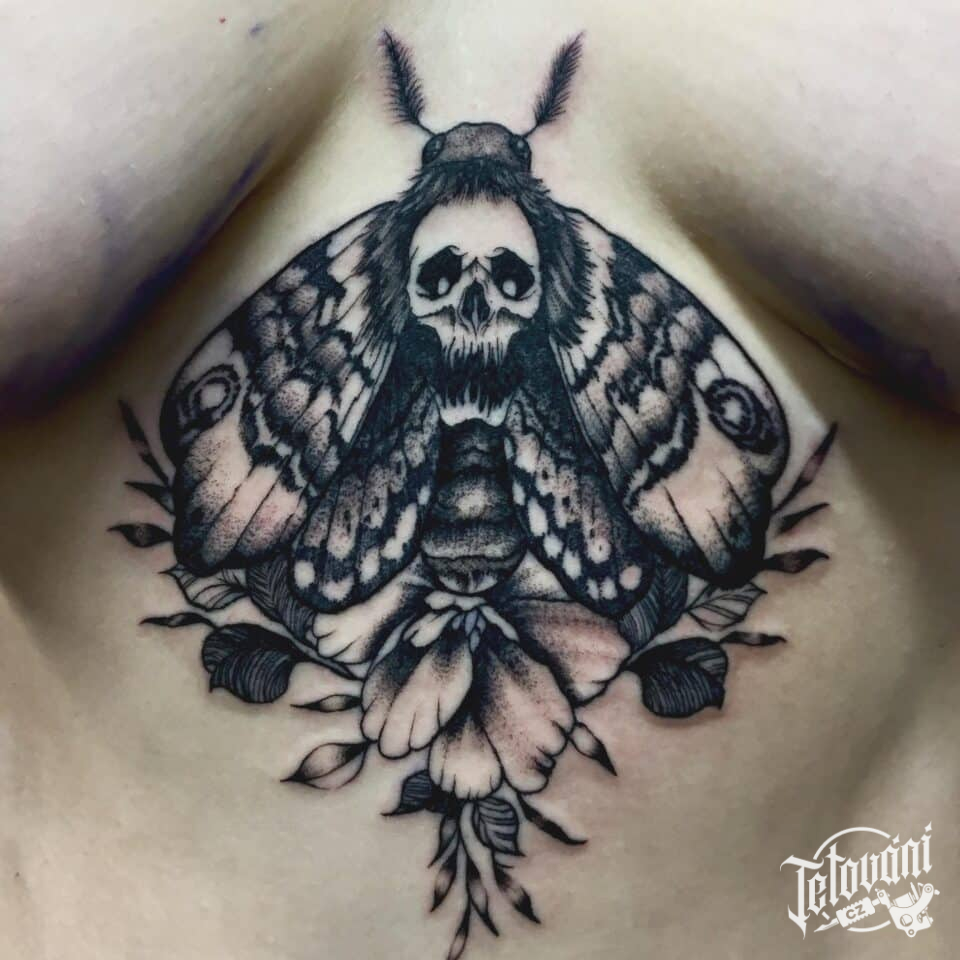 Tetování lišaj smrtihlav a lebka mezi prsa
