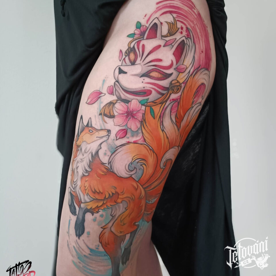Tetování liška, květiny...