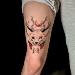 Tetování liška, měsíc, květiny na stehno