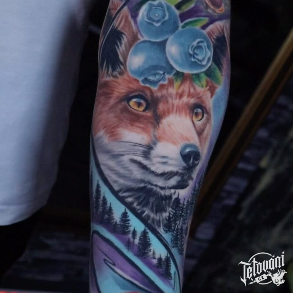 Tetování liška, příroda, les na předloktí