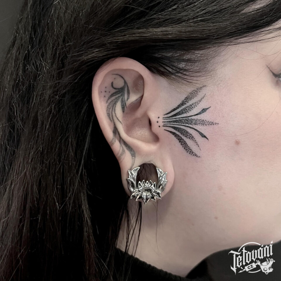 Tetování lotosový květ mandala na ucho a obličej