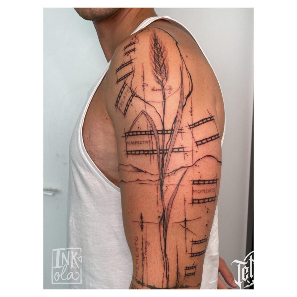 Tetování luční květiny na rameni