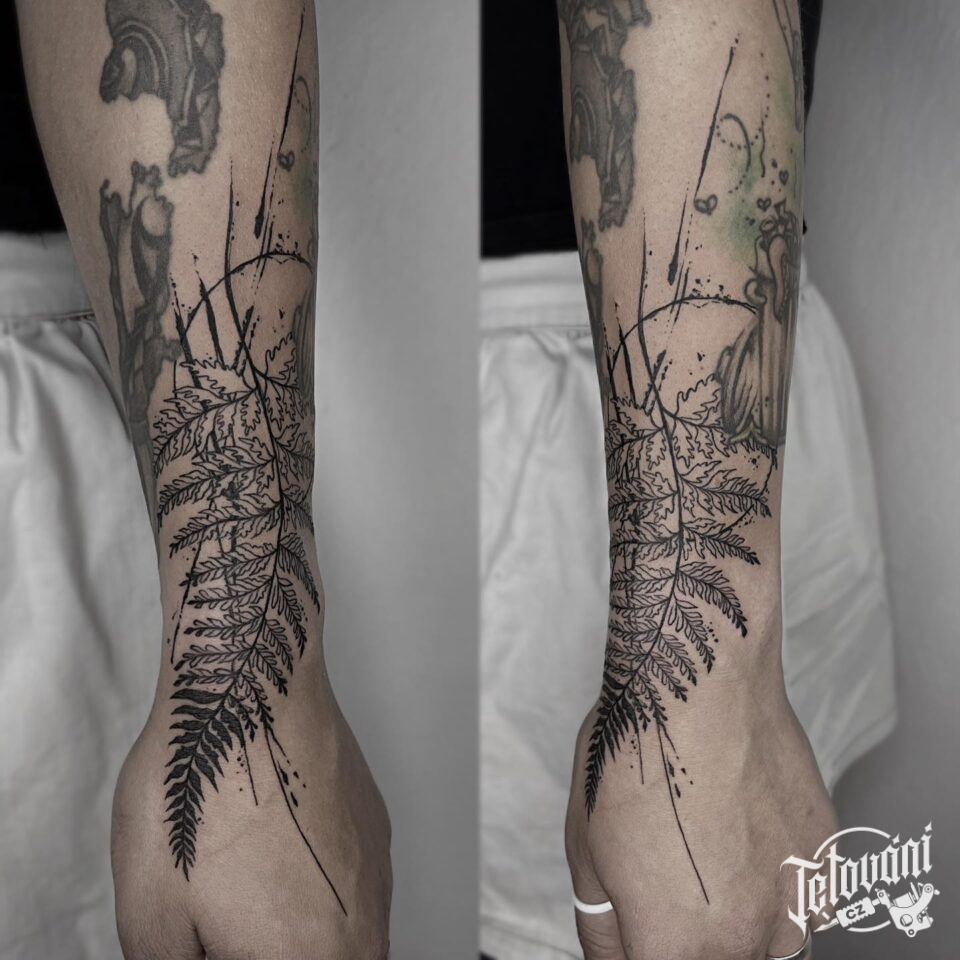 Tetování luční kvítí, květiny, čáry na předloktí