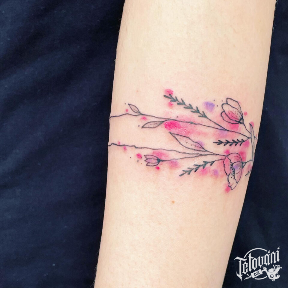 Tetování luční kvítí, květiny na předloktí